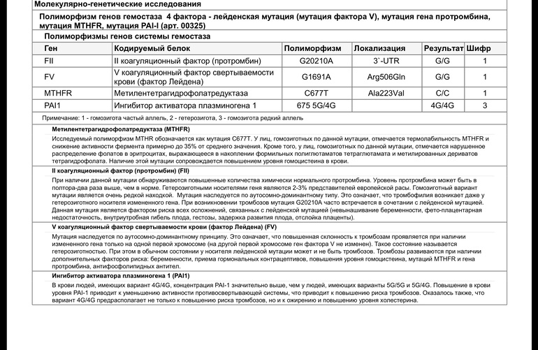 Да, у Вас PAI1 в гомозиготном состоянии.Мой гематолог сказал,что не все важные сдала...(сдала так же как и вы).Вот пришлось до сдавать Фибриноген бета.