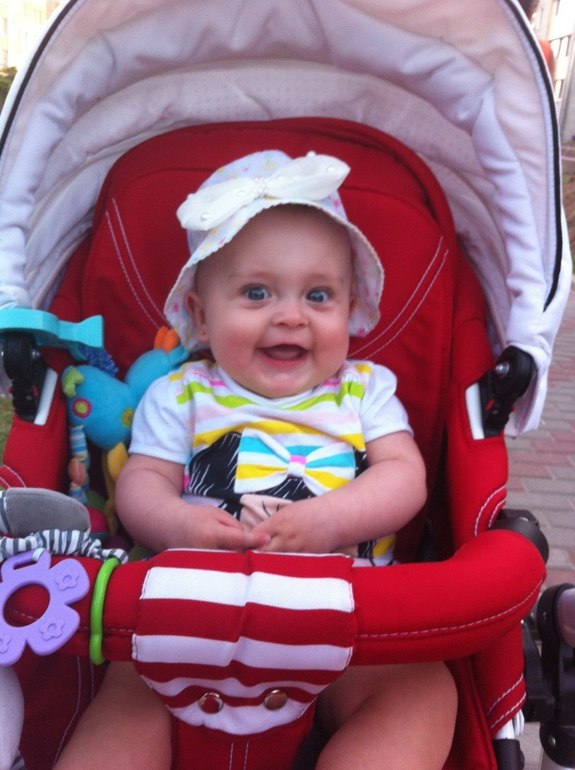 очень улыбчивая, на улице всем улыбается, взрослые просто умиляются.