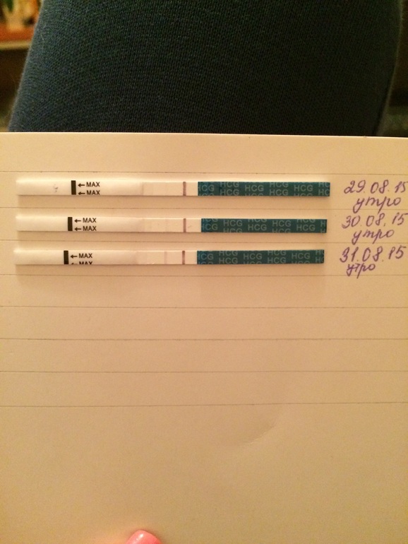 Короче так: сегодня 7 дпп. Скажу сразу: я начала тестоманить с 5 дпп. Не потому что я маньячка, а потому что в первом протоколе на 9 дпп получила результат 8. Это был шок, никаких тестов я не делала. Что было до 9 дпп одному Богу известно. В этот раз я решила, а сделаю тест на 5 дпп просто ради интереса. Будет пустой- не расстроюсь, тк рано. И ООО: я увидела призрак. Делала тесты 3 дня подряд и увидела, что полосочка ярчает!!! Мои ощущения не передать: радость, дикий страх... Сегодня сдала ХГЧ... Сижу, читаю ленту, нервничаю в ожидании. Результата все нет и нет. И вижу пост Бублика. И такой красивущий тест. Думаю : блинннн, сейчас покажу свои. Честно скажу, мои полосочки по скромнее))) правда эвик еще не мочила, лежит приготовленный на завтра. Думаю показывать или нет))) Или подождать))) и тут приходит результат: девочки мой ХГЧ 80)))) на 7 дпп. Пожалуйста, дорогие, не поздравляйте, боюсь даже дышать. Мысли дурные лезут: я же в прошлом протоколе не знала что было до 9 дпп((( Вдруг упадет(((( в среду пересдам ХГЧ. И на последок мои тесты: