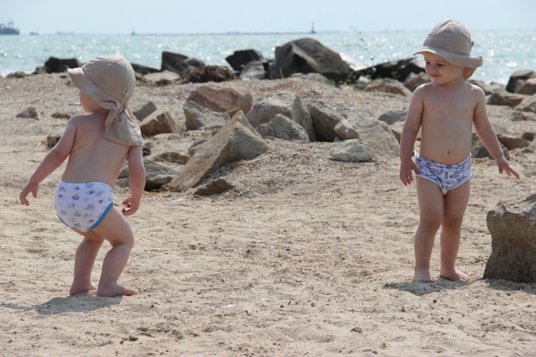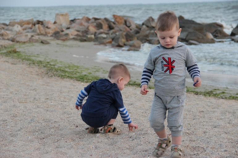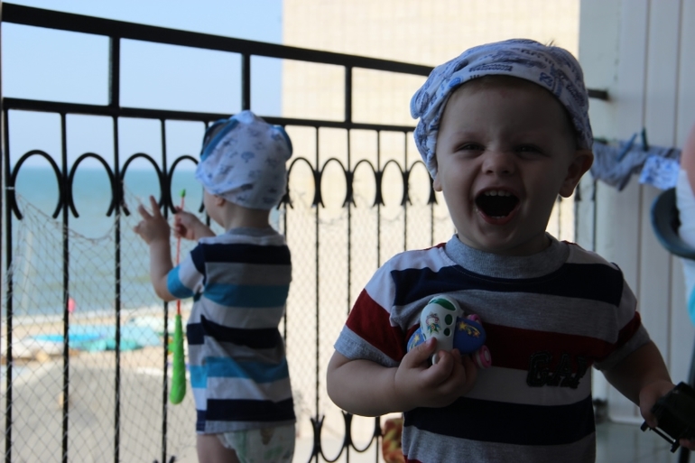 И вот мы измотаные, загруженые по самое ни могу, с ослабевшими детьми в машине по пути на море... Я очень рада, что поехала! Для мальчишек это был просто рай!!! Мы конечно замотались с ними не то слово.. Толи звезды так сложились. толи море так на них повлияло))) Они ооочень вытянулись, начали болтать без умолку,складыват предложения! А также хитрить и проявлять характер. Особенно Тимурушка! Мы отказались от сосок в силу болезни... Но вместе с сосками мы устроили полную анархию, неподченение режиму.. да просто хаос!!!! Тимур отказался спать в кровати! На отрез! Ни договориться, ни тем более настоять неозможно! Орет, показывает на кровать взрослую... и каек протест проспал час стоя, но не лег! В итоге спит на кресле в детской... Это ппц..