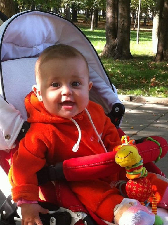 Сейчас встает за все поверхности, те что по силе ее росту, даже по стене встает. Научилась приземляться на попу и если бывает заваливается на спину, то голову держит, не ударяет о пол. Стала вставать сама в коляске и в стульчике для кормления если не пристегнута, поэтому теперь только ремнями пристегиваем. Кстати в обуви не любит находиться дома, твердо ей ну я и не мучаю ее постоянным прибыванием в ботинках.