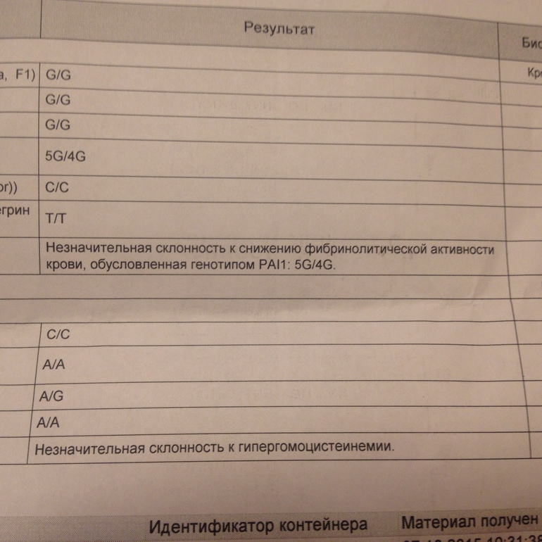 PAI1 тем более 5g/4g не страшно, как настанет Б или перенос эмбриончика гематолог назначит колоть гепарины или ввесел ду эф пить, это не сильно страшно)