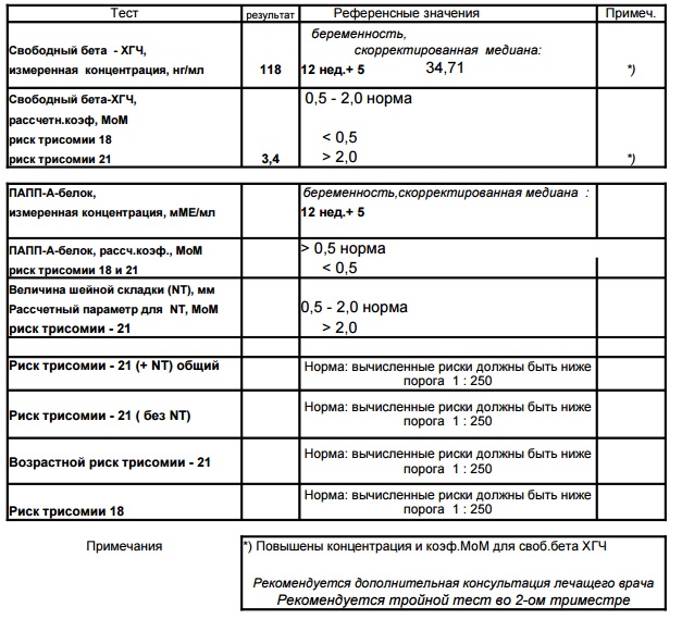 повышен свободный бета-хгч. в графе вообще не понятно почему не указана носовая кость, а по узи она есть.
