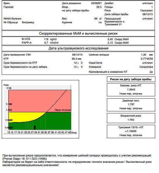 сама неспокойна, все ризки низкие кроме возрастного(((1 к 191 но мне сказали что это статистичекий риск а не индивидуальный (мне 36 лет)...но к генетику тож ехать