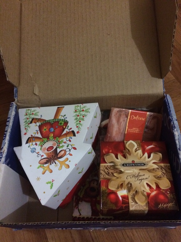 Спасибо феечке из Петрозаводска!!! Красивая уютная кружка, милое полотенце, забавный Дед Мороз, безумно вкусно пахнущее мыло и няяяяямистые конфеты!!!