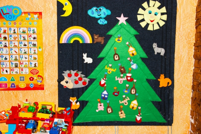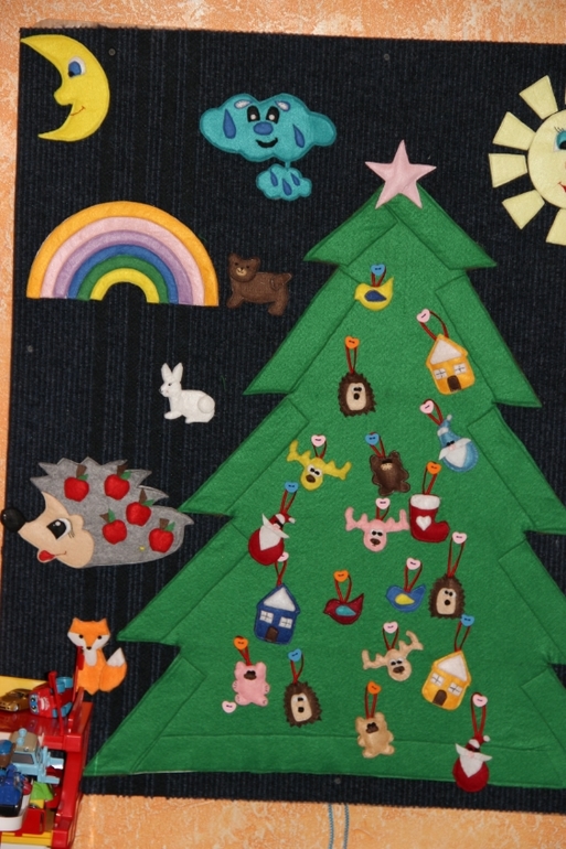 Помимо основной красавицы, у мальчишек своя елка! На фетровой доске мы занимаемся давно, но вот елка была для них приятным сюпризом))) Ну не буду вас утомлять, просто покажемся, чтобы нас не забывали)))
