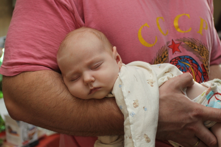 Спасибо, Катюш! А муж был романтиком и остался, видимо за 8 лет подзабылось чуток. У Дашули эта любимая поза у папы на руках, у меня она любит на плече ездить, а у папы видать плечо жесковато...зато на руке СУПЕР! Как на матрасике ортопедическом (жестком, но мягком, да еще и с подогревом)