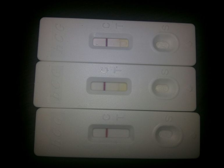 Разглядываем тесты // пока ждём результат ХГЧДевочки, понимаю что рано, но схожу с ума. Вчера сделала тест, сегодня утром тоже, полоски одинаковые. В исследовательских целях еще один, на фото нижний, намочила водой. Можно начинать надеяться? В поддержке только прогестерон.