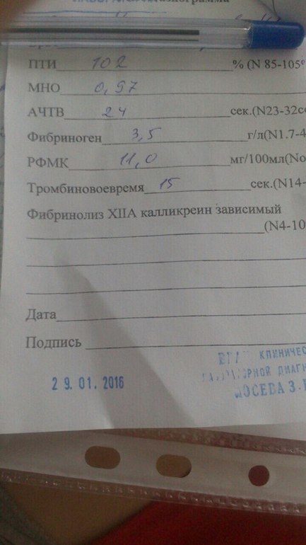 видать на основании вот этого:Повышение уровня РФМК в плазме характерно для активации свертывания крови, причем, чем больше их концентрация, тем выше риск внутрисосудистого тромбообразования (при тромбофилии, тромбозах и ДВС синдромах); норма рфмк до 4,а у вас 11,думаю так,это просто мое мнение,я не врач,поговорите с врачом
