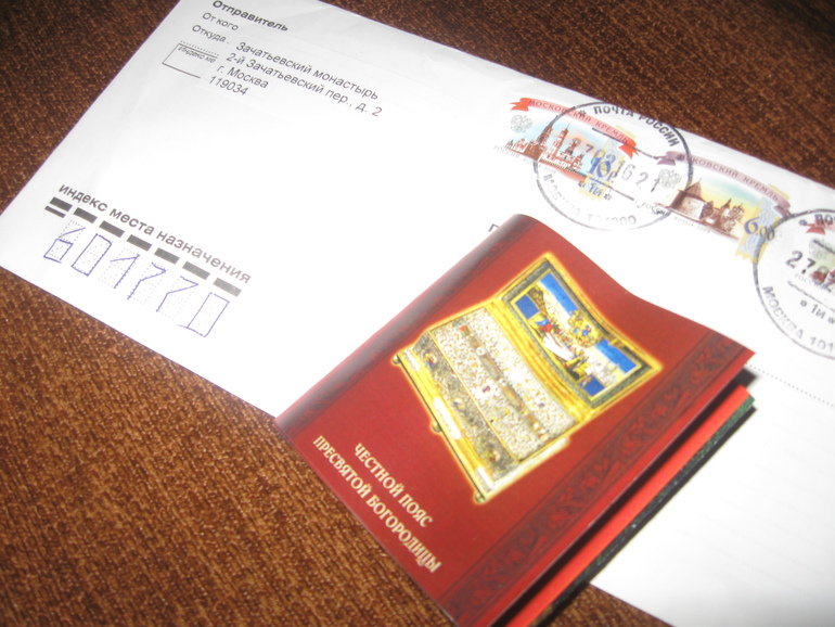 Просим о ЧУДЕ // (молитвы,записочки)В январе тут на ББ наткнулась на пост о том, что девочка ездила в Зачатьевский монастырь и приобрела поясок Пресвятой Богородицы. Я вышла на официальный сайт монастыря и написала сестрам письмо о себе и с просьбой выслать мне такой поясок. Прошло два месяца, я уже думала, что ничего не придет, а тут два дня назад дочка вынула из почтового ящика конверт, а в нем поясок. Спасибо огромное сестрам за заботу о нас. Через месяц в протокол, теперь уж точно все получится.