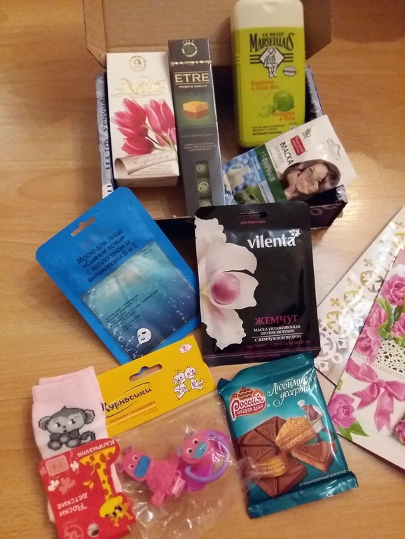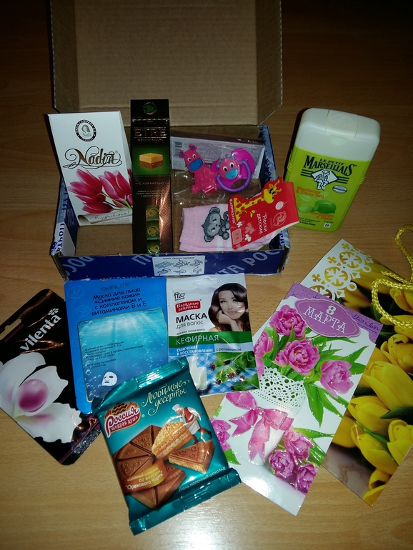 Лееееночка, а это от Вас?!!!🙆 Спасибо Вам большущее! 😘😘😘 Вкусняшки уже все почти уничтожены)))) 🍫🍬Остальное все такое прекрасное и ароматное. Носочки супер, такие мимимишные! Надеюсь, что сосочка с носочками обретут свою маленькую полноправную хозяйку(или хозяина)👶 менее чем через год!!! 😉😃 Спа-си-бо вам огромное! Леночка, с Праздником Вас, с 8 Марта! Пусть исполнится Ваша заветная мечта! Дай Бог! 👼😃