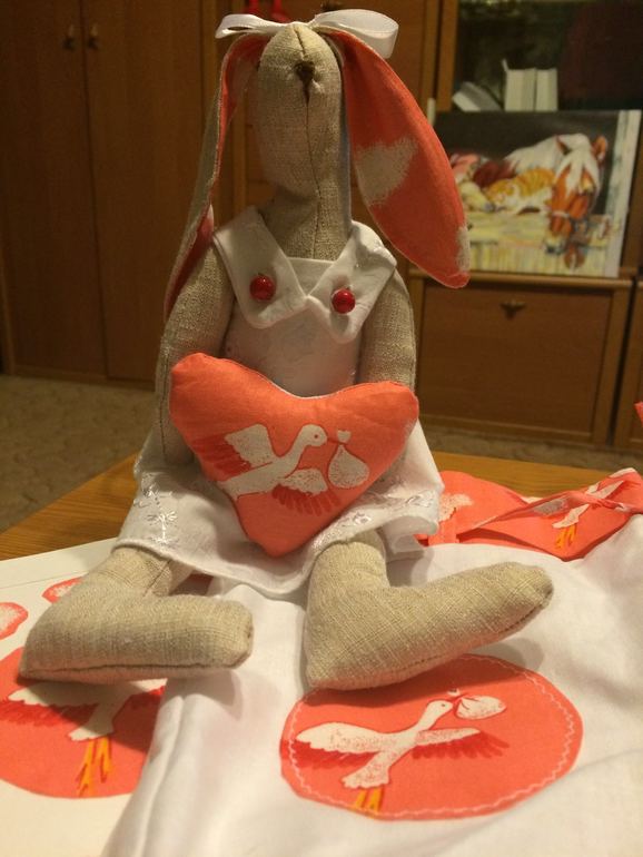 Если не ошибаюсь, такого зайку выкладывала девочка. Предлагала сшить всего нескольким девочкам. Рассказывала, что это очень особенный зайчик и 100% принесет беременность. Если это он и есть, то его заказала та, кто вам от чистого сердца больше всего желает победы. Я запомнила этот принт, т к тоже хотела заказать для своей подруги, но потеряла пост.