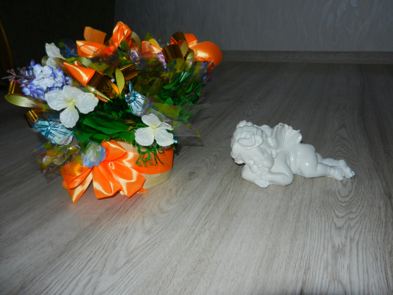 Вчера было вдвойне приятнее получить эту красоту, т.к. настроение после пролета не очень радужное было. Но посылка творит чудеса))) Сладкий букетик поднял мне глюкозку, а этот милейший ангелочек меня просто покорил! Вот даже нашла ему уже место)))