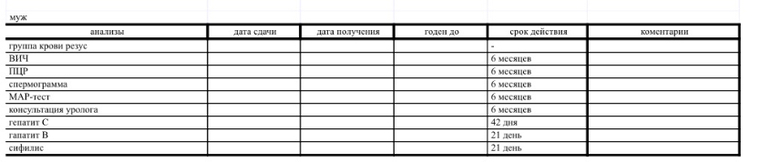 ЭКО по квоте и полису ОМСВот сделала для себя список анализов
