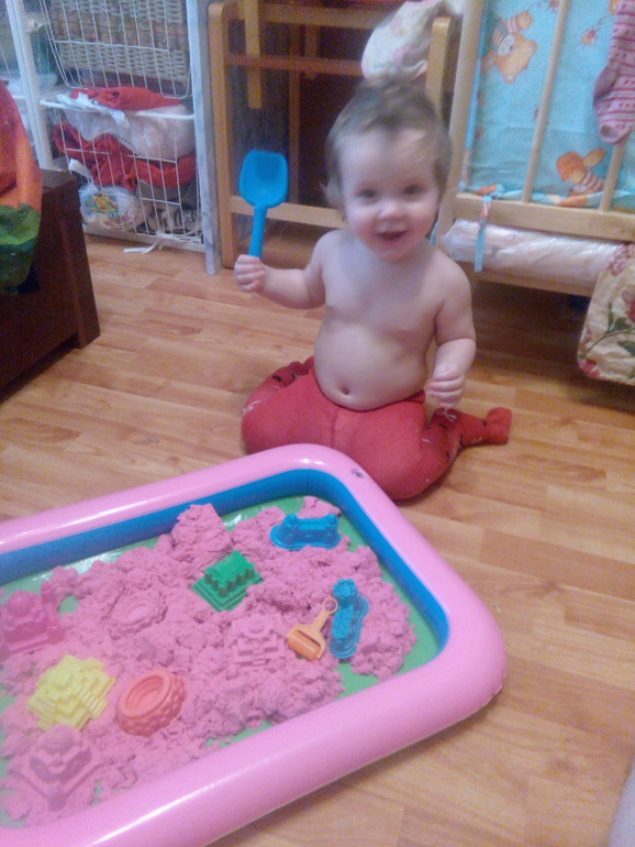 Было время фанатели от шариков, сейчас фанатеем от наших кошек - бегаем за ними, пытаемся ловить, но кошаки пока шустрее. Но мы с мужем одну поймаем и даем Волюшке погладить, у ребенка сразу такой восторг!