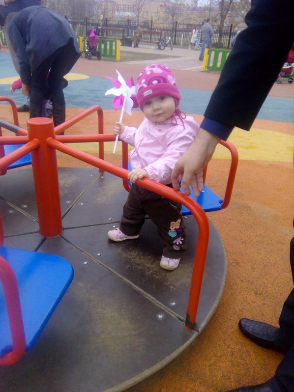 Очень любит... нет ... ОЧЕНЬ любит ходить. сейчас для нас пройти путь от дома до площадки ( 400-500 метром) туда-обратно не проблема. На самой площадке любит карусельку, которая по кругу катает ( тут даже с большими детьми катается, когда ты быстро ее раскручавает. да и может час кататься и все равно ее от туда не снимишь) и горки ( опять же не маленькие по возрасту которые, а большие).