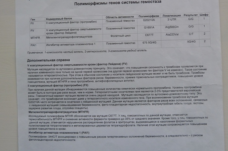 Гемостаз (+ИГ и ЛИТы)Девочки, у кого такие мутации? Какое лечение Вам назначали? Готовлюсь к 3 протоколу, к гематологу только через 5 дней. Спасибо за ответы.