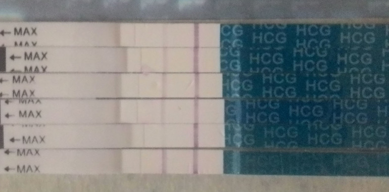 1. Тесты "Я родился" , чувствительность 10. Вот фото . сверху вниз по дням- 4, 5, 6, 10 (полоска есть УТРОМ), и 10 дпп чистый ДНЕМ, через 5 часов.