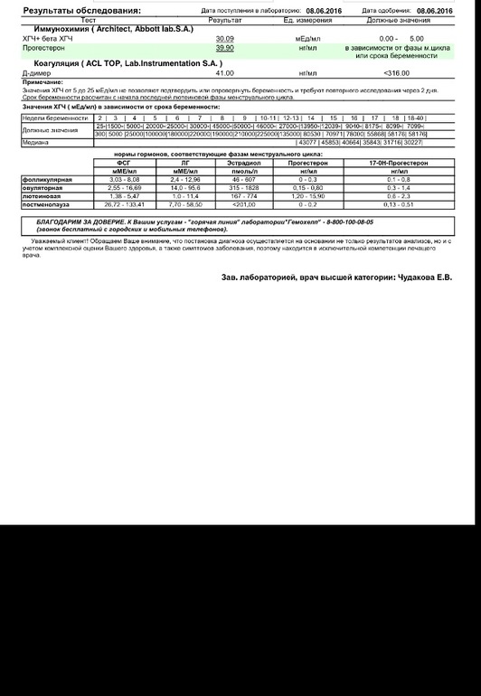 Прогик по-моему отличный. Почему вас смущает? В "нг", если бы в "номль", то приблизительно 120. О ддмере я сама пытаюсь понять, тоже низкий. А почему вы сразу не сдали коагулограмму? С ней бы врачу проще было. Думаю, что вам назначат через день клексан а не каждый день.