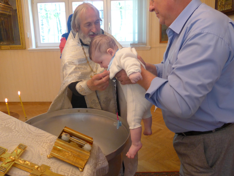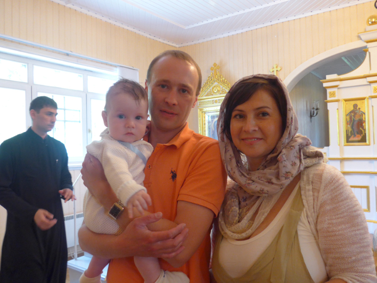 Неделю назад покрестились, вёл себя отлично, а когда делали помазание открывал рот, думая что его кормят))) потом посидели в кафе всей семьей, крестили одновременно его и двоюродную сестренку.