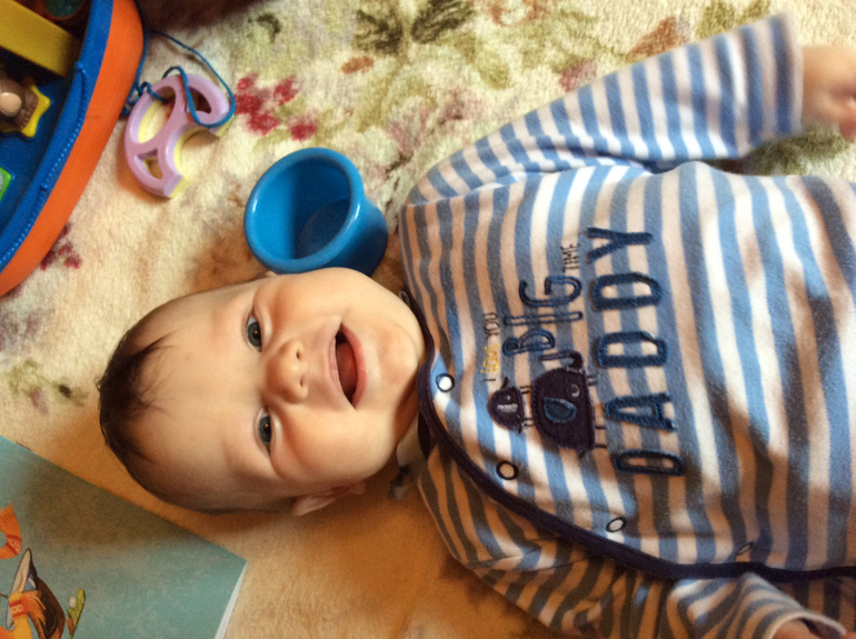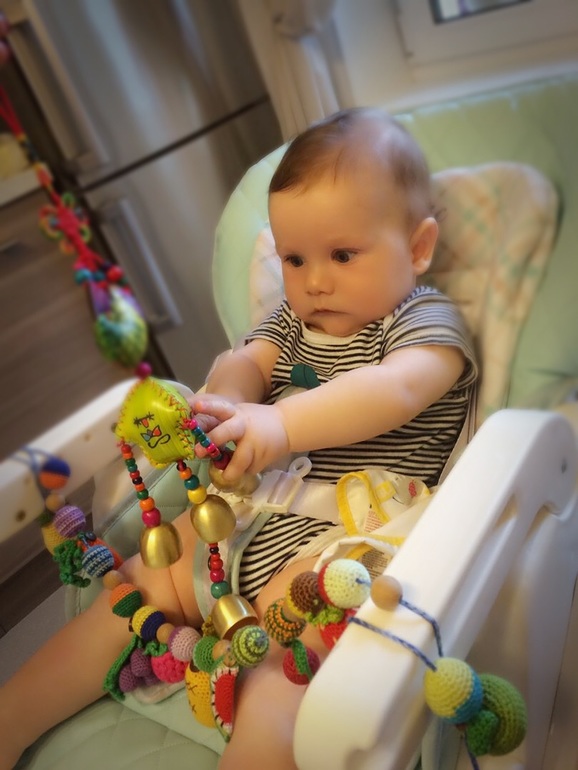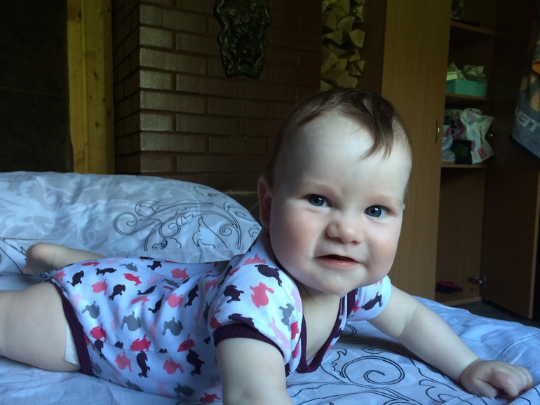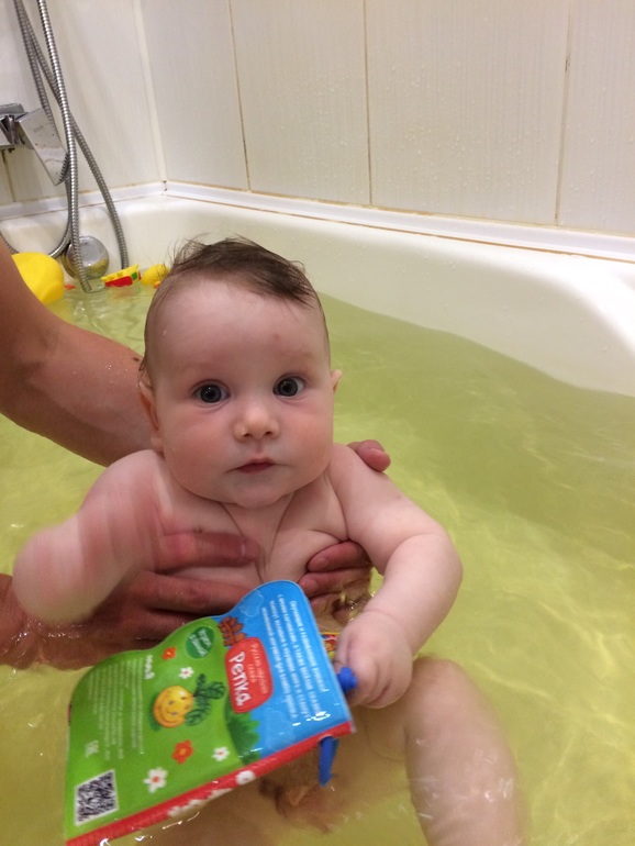 И вообще этот месяц очередной скачок в развитии. Ваня уже практически ползает, перемещается с коврика на пол , грызёт края развивающего коврика. Встаёт на четвереньки и раскачивается, наконец стал спокойно переворачиваться в другую сторону , а то раньше ему удавалось делать это только в одну. Садиться хочет и кряхтит в автокресле и стульчике для кормления пытается сесть)) когда ему помогаешь это сделать сразу взгляд такой победный!!! Едим кабачки, цветную капусту из баночек, уважаем чернослив и грушу. Кашу пока никак не хочет есть, ни с моими молоком ( мы только на ГВ) ни с фруктами. И учимся пить из детской кружки с силиконовым носиком , так как из рожка это делать не любим и не умеем. Сделали третью АКДС вчера пентаксим, ттт все нормально.