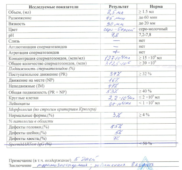 Сейчас муж проходит лечение, которое назначил андролог Ещё 30 уколов. Для себя решили сдать СГ ещё раз. Разница между ними 4 недели. Меня предупредила девушка одна, что в ходе лечения СГ ухудшается, вот что имеем сейчас