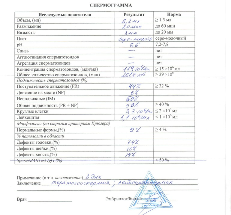 Настя, привет! Ваш андролог выяснил причину патологий в морфологии? 30 уколов! это не мало! тут надо понимать что они должны улучшить! У вас во второй сдаче патологий еще больше стало (было нормальных 4% , стало 2%). У нас тоже была проблема - всего 3%..патологий головы -88%..до этого сг не сдавали..была и зб, и две бхб..Стали выяснять - сделали глубокий анализ и нашли инфекцию (халмидиоз)..черти пойми откуда (9 лет вместе и пцр всегда отрицательный) ..пол года лечили..обоих естественно..были и уколы (не много) и антибиотики и даже массаж простаты....врачи рекомендуют предохраняться.