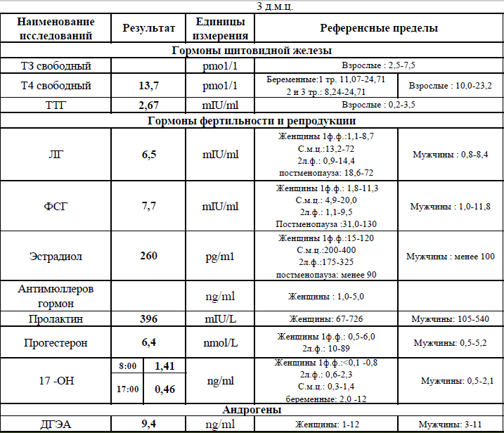 очень высокий эстрадиол и прогестерон. вам случайно гиперплазию не ставят? тк нарушение на 3 дц данных гормонов. советую сделать пайпель-биопсию эндика. и ТТГ с пролактином желательно снизить. ТТГ до 2. пролактин до 250