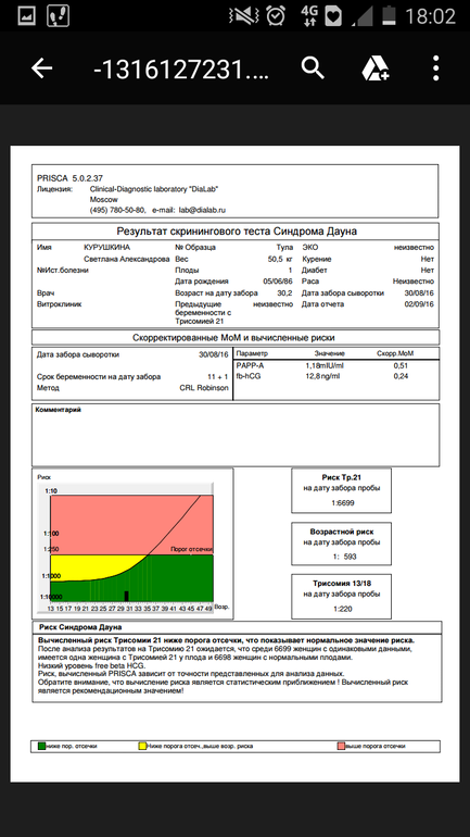 Блин, честно нифина в этом не понимаю... Но понимаю, что видимо есть риск и понимаю как тебя сейчас колбасит. Держись, я уверена что все хорошо с лялечкой, ох уж эти риски. Я свои результаты в глаза не видела и слава богу. По узи же все хорошо. Обычно, если есть грубые пороки, там и воротниковая зона сразу плохая и по органам видно. Может, попробовать пересдать?