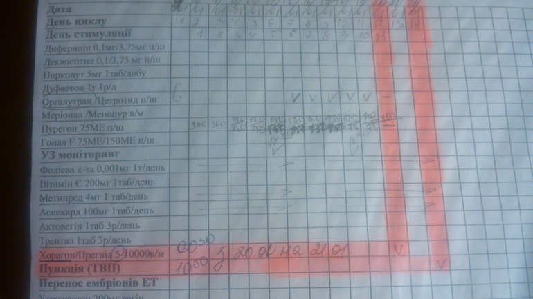 Марина, смотрю по схеме , пункция была на 14 день верно?и здесь у вас только был пурегон? И вам разделяли укол на 2 раза (утро,вечер как я понимаю),верно?