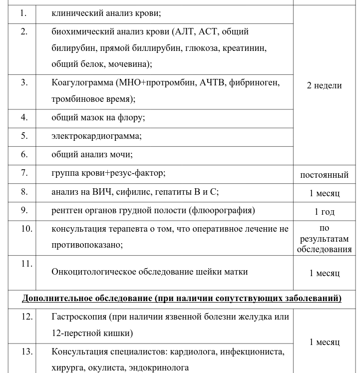 Я делала у Дубинской, список был стандартный для гистеры: инфекции, мазок, кровь, моча.