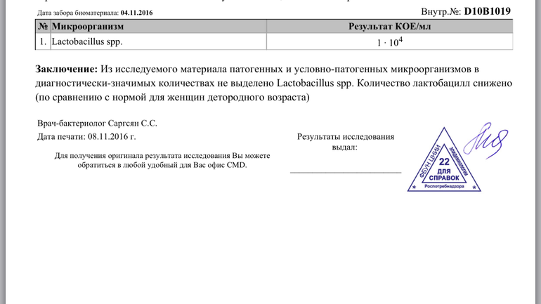 Сдала бакпосев и микрофлору и в инвитро и в ЦМД. Лактобацилы 10 в 4 это много или мало? Может лактожиналь проставить? Или противомикробные какие то?