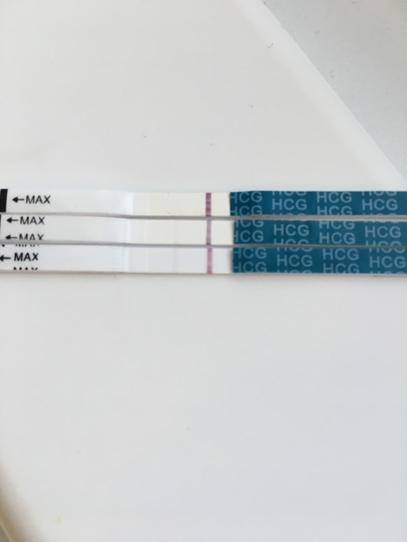 у меня такая полосочка(как у вас нижняя) была при хгч 87,так что ярчайте,все хорошо будет)И сдайте кровь)