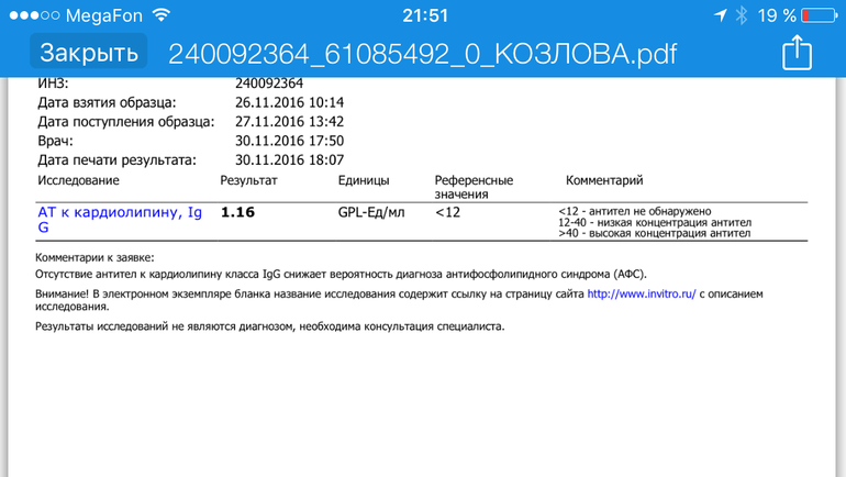 Анализы и процедуры. Помощь в расшифровке результатовДД, я так понимаю что с АФС все норм. Волчаночный антикоагулянт тоже оридцательный. Анализы под кат
