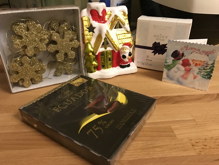ПоздравленияВот и я получила посылку от снегурки ! Подсвечник то что надо ! И украшения на ёлку красивые :) Спасибо большое за подарок!