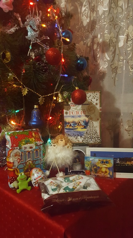ПоздравленияВ таком волшебном предвкушении бежала на почту сегодня после работы!!! Вчера только квитанцию принесли,а на почте посылка была уже 30 декабря.Без квитанции не дали(((Наша Снегурочка Надежда из г.Ломоносов(Санкт-Петербург)-такая умница!!!!Чувствуется,что все подарочки выбирались с такой заботой)))