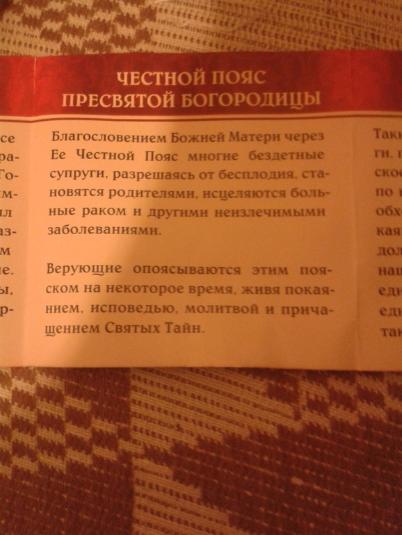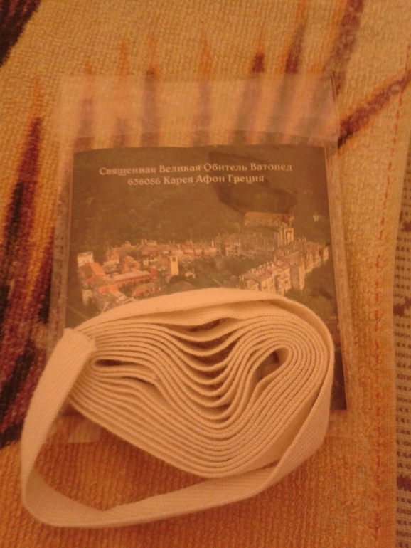 Я в общем написала им письмо с просьбой выслать мне этот пояс. И вот спустя месяц мне прислали этот пояс. А еще ранее мне Алина (девочка с этого форума) выслала совершенно бесплатно иконки с этого монастыря. Господи счастью моему нет предела.