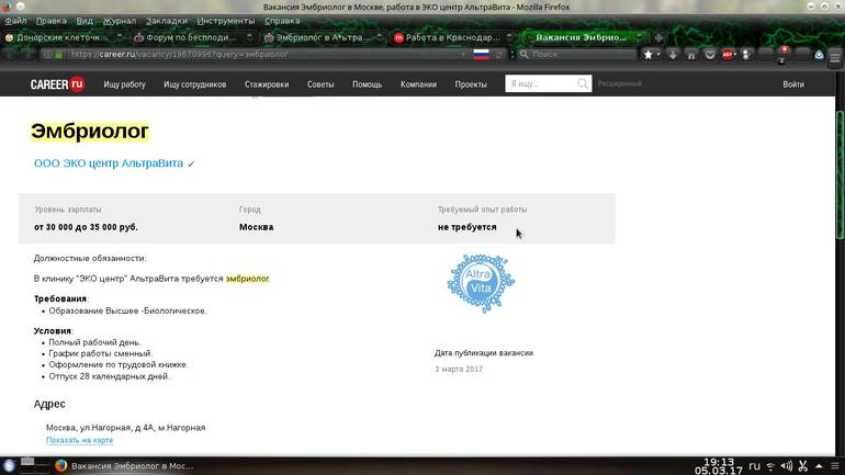 Ну и зарплата у эмбриологов, конечно, не та, которая указана в объявлении, оно о поиске ассистента.