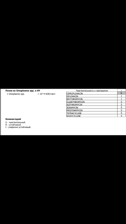 результаты обозначают, что уреаплазмы больше чем норма, и список антибиотиков, к которым она у вас чувствительна. На самом деле, мой репродуктолог сказал, что уреаплазма как таковая не влияет на беременность - ее можно купировать уже и в ходе интересного положения начиная с какой то там недели.... в идеале. конечно. пролечить. НО! я пила антибиотики во время стимуляции, писец дорогущие! Вроде как именно они не влияют н ход стимуляции. Изначально думали отложить протокол, но так как все остальные анализы были в норме и свежие - в протокол пустили.