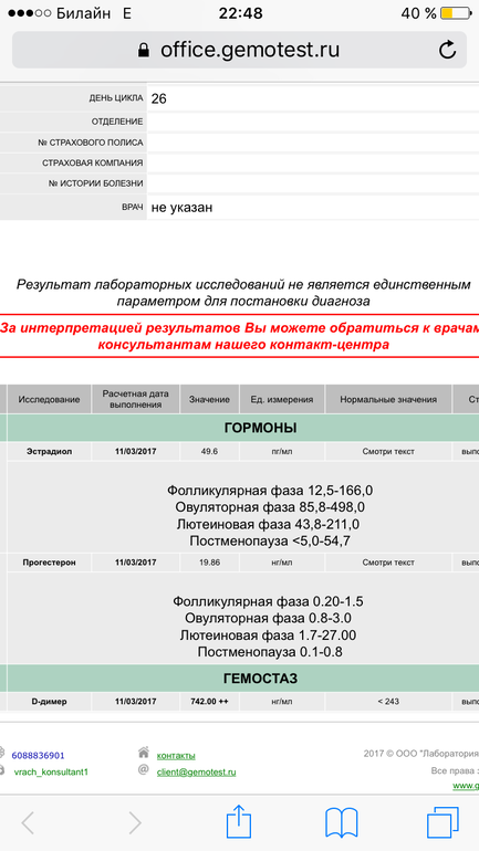ох, елки(( эстрадиол совсем низкий( да и прогик... (( а вот д-димер ого=го.. но это вполне может быть результатом поддержки..