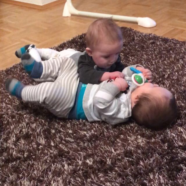 Оба просто без ума от старшего брата , если его видят то всё больше ненад ни мамы ни папы!! Смотрю на них троих и на душе спокойно!!