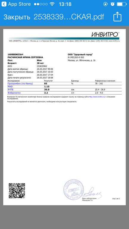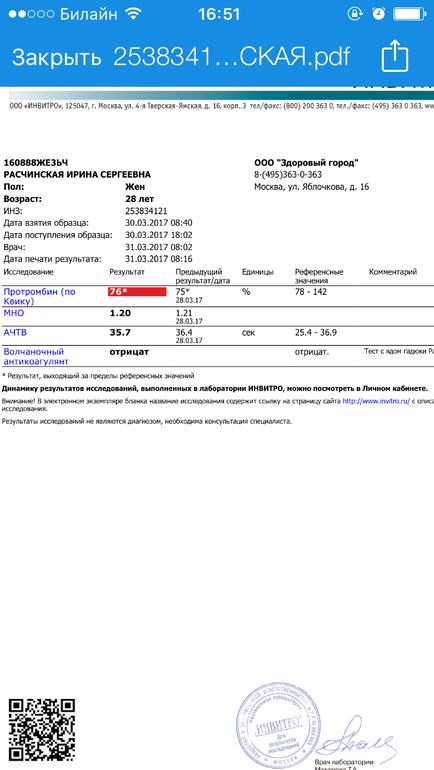 У меня ещё есть. Это мне назначила гематолог. Положительным только он оказался