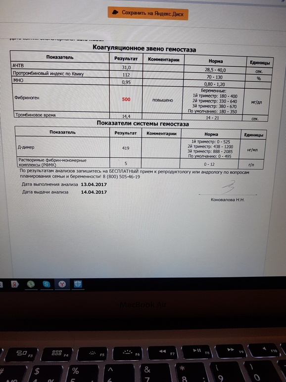 Анализы и процедуры. Помощь в расшифровке результатовДОброе утро !! девченки подскажите пожалуйста пришел результат анализа фибриноген повышен фибриоген 500 мг/дл по результатом лабы архимед, что это такое??