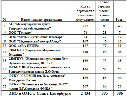 получается по 2015 году более успешные результаты у 1.Городская Мариинская больница,2. Ава-Петер, 3. МЦРМ, 4. им. Алмазова 41,9 - 46,5% беременности. Из них родов 69,5-85,3%. Жаль, что не 100%((((((((