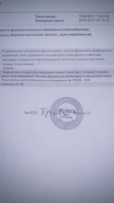 Лапароскопия, гистероскопияПришёл результат гистологии