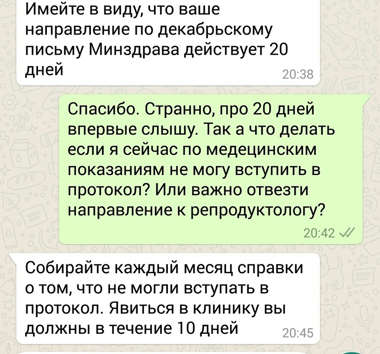 приоритет везде платные протоколы😕 позвоню завтра в минздрав по мо. Просто третий раз получаю и ни разу мне про эти 20 дней никто не сказал. Конечно до этого и в протокол я бежала побыстрее, а сейчас решила подготовиться получше
