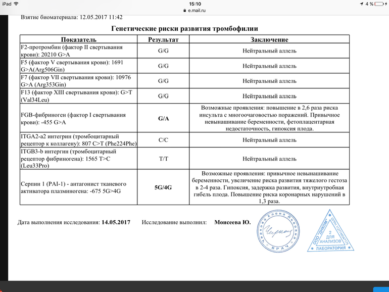 Девочки, кто-нибудь разбирается в тромбофилии? Был выкидыш в декабре (причина- затроение 9-й хромосомы у плода), ре назначала доп.анализы генетические, и они совсем меня не порадовали, что это и как лечится? В след.месяце в крио собираюсь