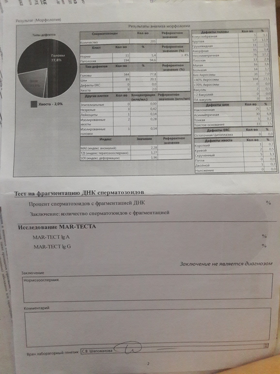 Мужу спермограмму с мар-тестом и фрагментацией.
