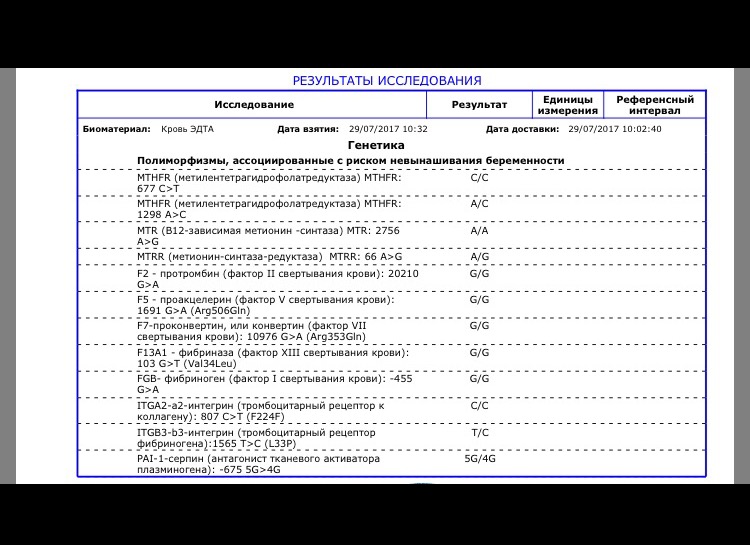 Получила анализ свой на полиморфизмы😊 В комментариях попробую фото загрузить, тут не получается(((