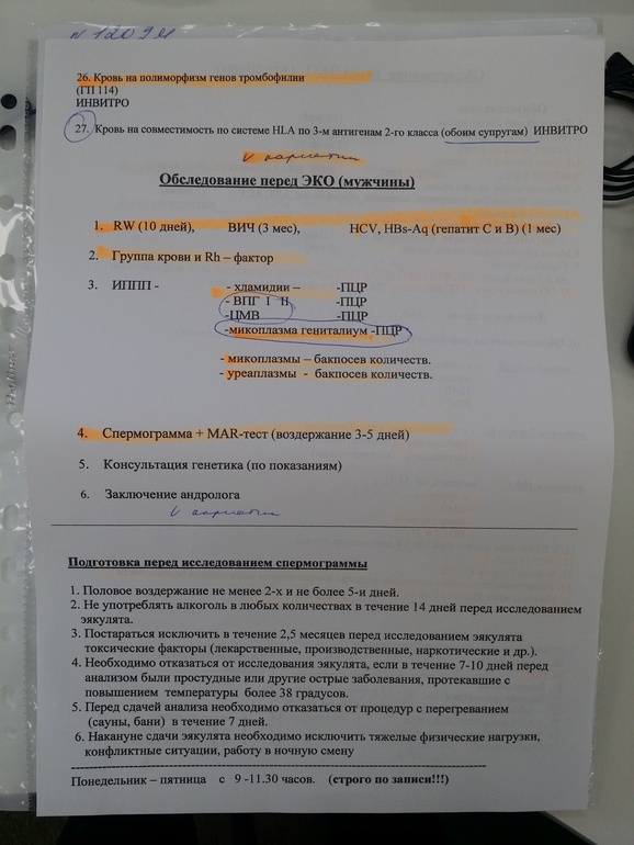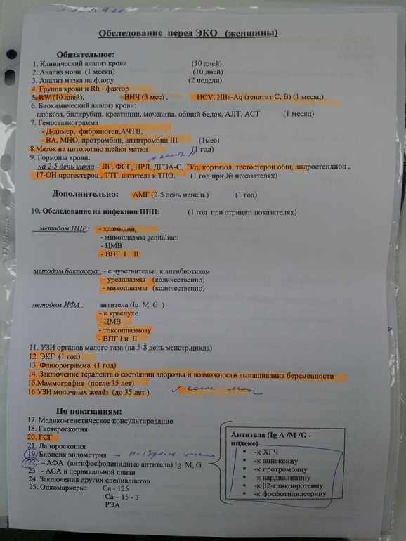 Примерный список анализов на ЭКО во вложении, причем обратите внимание, что анализы сдаете и вы и муж.